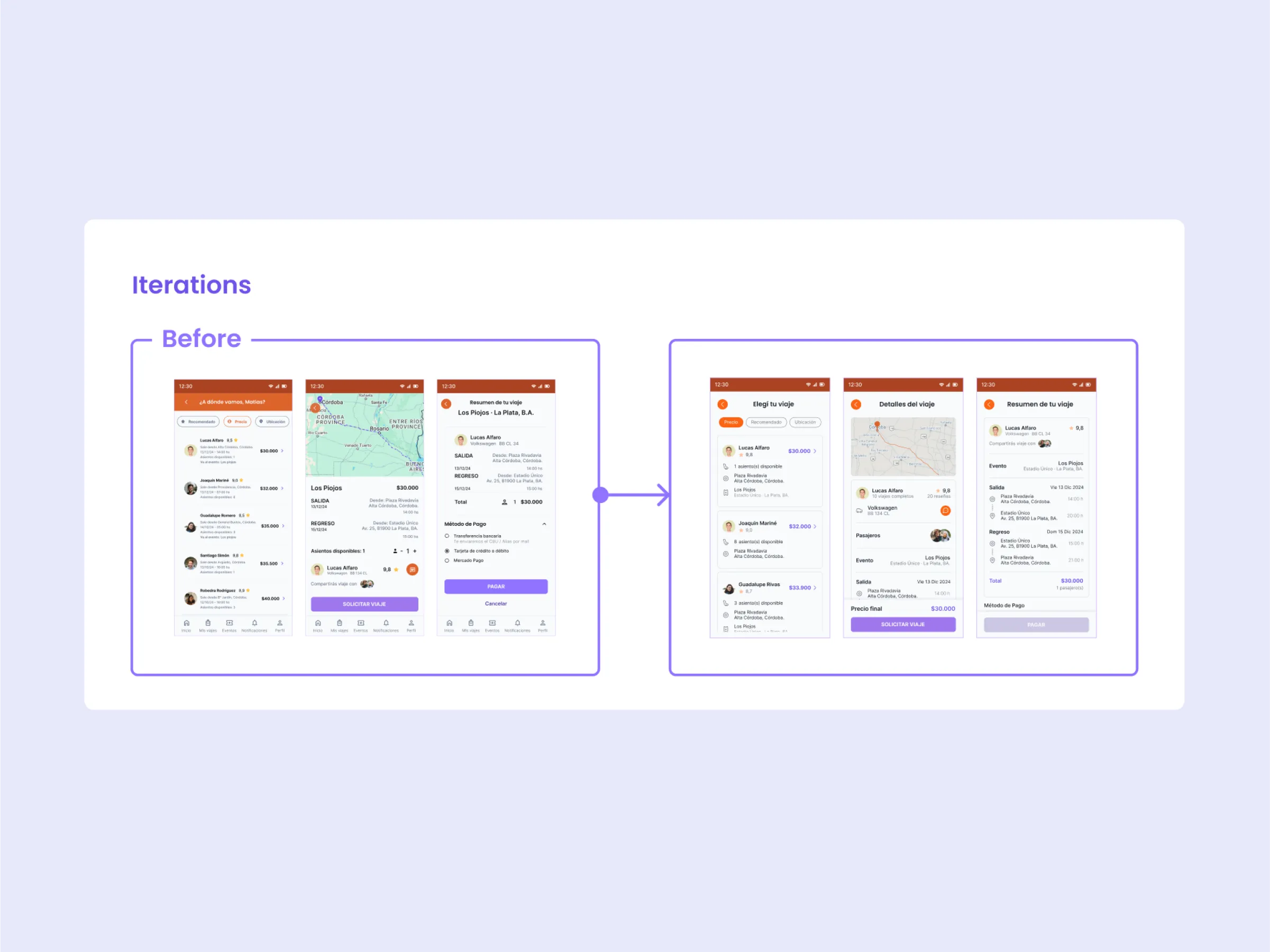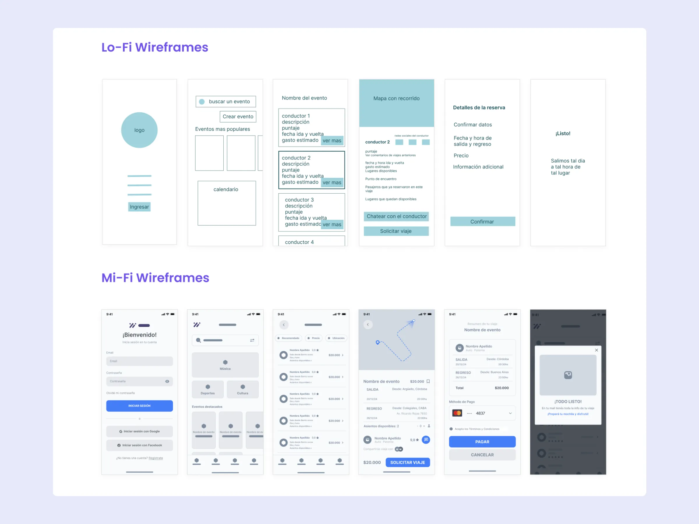 The goal was to create a ride-sharing platform that helps users find or offer rides, making transportation easier and safer for people attending cultural, sports, and recreational events. As part of a team project, I contributed to the full process from user research and competitor analysis to defining user flows, designing wireframes and high-fidelity screens in Figma, and building an interactive prototype. We used tools like Mural for collaboration, AI for copy and ideation, and Slack for communication.